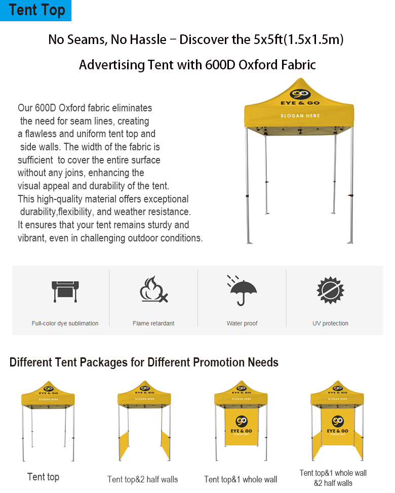 Note:The fabric of roof is 600D oxford ,it is full printing and no joining so that it can't break the image perfection.