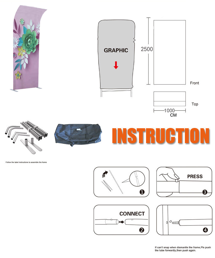 Price include aluminium tube frame, 9 oz fabric with sublimation printing(sigle side artwork,another side is white fabric ) .