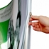 These banner stands feature a curved design to add a unique element of style, without sacrificing floor space.