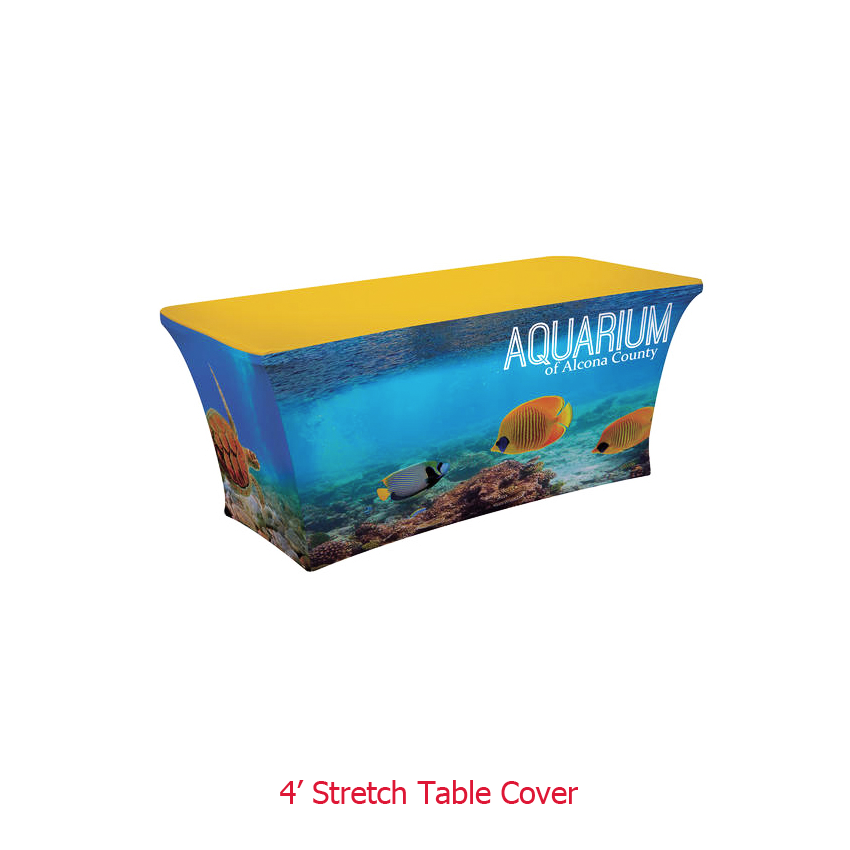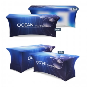 This table skirt, also known as a tablecloth, is printed using a full-color dye-sublimation procedure.